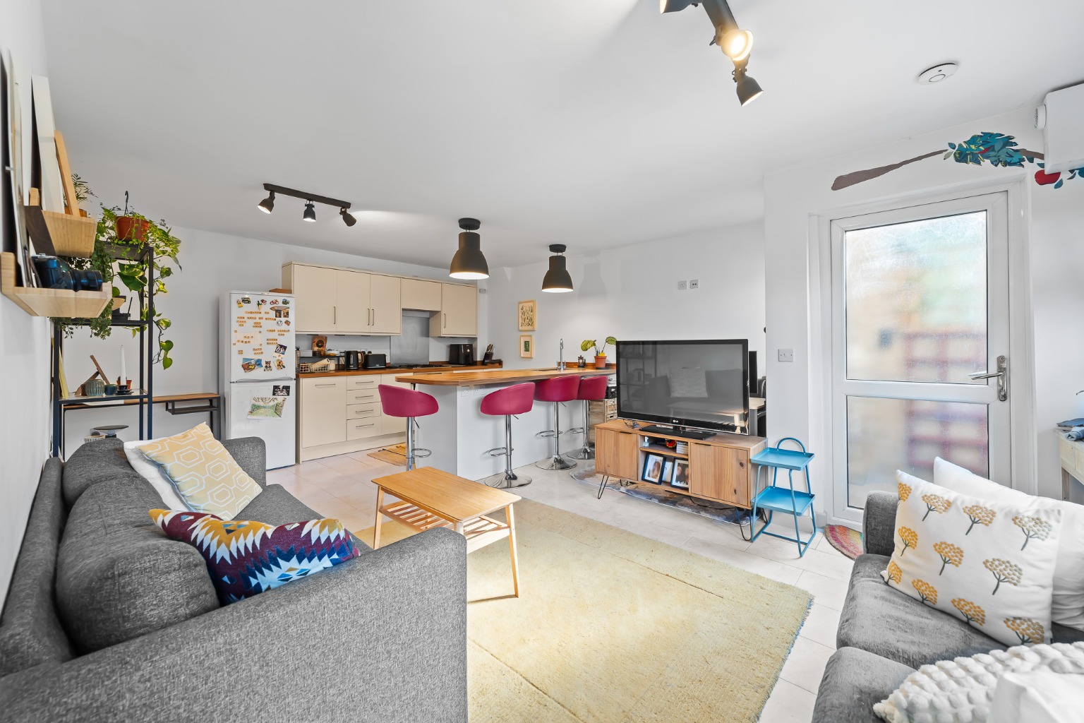- Open-plan living area and kitchen